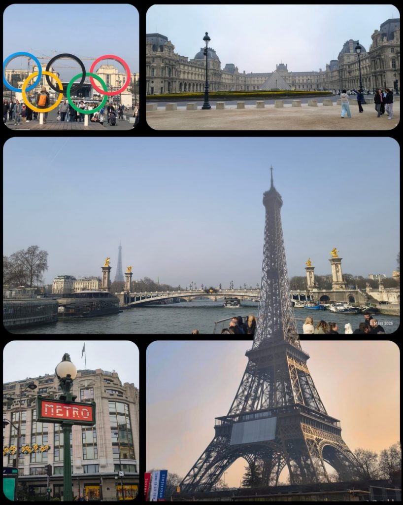 Zuerst liefen wir zur berühmten Kathedrale Notre-Dame, die seit einem halben Jahr wieder geöffnet ist. Uns fehlte jedoch leider die Zeit um sie von innen zu besichtigen. Von dort aus ging es weiter zum Louvre, eines der bekanntesten Museen der Welt. Auch wenn wir nicht hineingegangen sind, war es beeindruckend, das Gebäude und die Glaspyramide zu sehen. Danach machten wir uns auf den Weg zur Bootsstation, wo wir eine Bootstour über die Seine machten. Vom Wasser aus konnten wir die meisten Sehenswürdigkeiten von Paris sehen. Zum Schluss unseres Aufenthalts liefen wir noch zum Trocadéro. Von dort hatten wir eine tolle Sicht auf den Eiffelturm, nachdem sich der Nebel vom Morgen gelichtet hatte. Auf dem Weg dorthin kamen wir außerdem an den Olympischen Ringen vorbei – ein perfekter Fotospot.